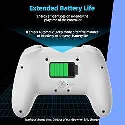 【Dual Motor and Six-Axis Gyroscope】The NexiGo Wireless Pro Controller for Switch and Switch 2 features dual vibration motors and a six-axis gyroscope, delivering precise vibration intensity in every scene to enhance your gaming experience. These features allow players to control characters more accurately and smoothly. 【LED Indicator Design】Bluetooth controller for Switch with LED Indicator is designed for informing players the controller is working. When this wireless controller starts working, the LED indicator surrounding sticks will turn colorful. Also, when players press the sticks, the color of the LED indicator will be changed. 【Fast Charge and Long-life Battery】 Our wireless Switch controller can support 8-10 hrs to use after fully charged. With fast charging function, the controller will be fully charged for 2-3hrs. Also, if the wireless controller stays in the standby function, it can live for 25 days. Prolong your gaming time. 【Bluetooth Connection】This Switch Controller features Bluetooth and strong anti-interference technology. This wireless controller can be easily paired with Switch Console via Bluetooth. And when you use the controller again, it can be connected automatically. Note: Before pairing the controller with Switch, please remove the USB cable and do not charge it. 【Comfortable Non-Slip Design】NexiGo Bluetooth controller for Switch is made of ABS material. With the comfortable texture and non-slip design, players will feel comfortable and reduce grip fatigue. The back of the controller with a non-slip design will improve its durability and resist sweat.