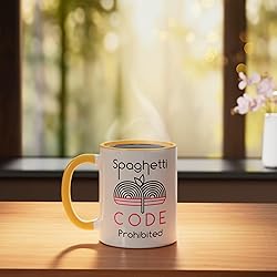 Computer Programming Spaghetti Code Programmer Italian Food. This Spaghetti Code Prohibited is for a computer programmer who knows the spaghetti code. Great for a software developer. Are you a spaghetti eater into debugging and coding? Are you a web developer or an information technology graduate who is a spaghetti lover? If yes, grab this. Awesome for a coder. 11-ounce ceramic mug is dishwasher and microwave-safe, lead and BPA free Features glossy finish with accent colors on interior, handle, and rim of two-tone designs