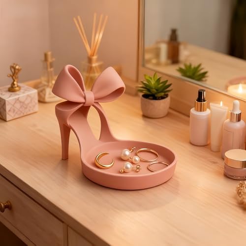 3D Printed High Heel Shoe Jewelry Holder,Elegant Display Tray With Bow Decor