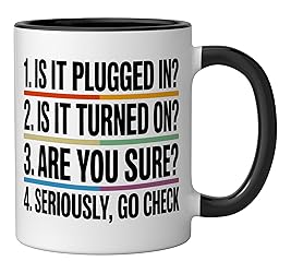 Perfect for tech lovers, computer geeks, IT professionals and network admins who fix tech problems and make things run smoothly. Great for men, women and coworkers who live the tech life, troubleshoot, code and keep systems online with patience and humor. Ideal for help desk teams, tech conferences or anyone proud to be the office tech wizard. Makes a fun choice for programmers, gamers, developers or IT guys who love clever tech jokes and computer humor. 11-ounce ceramic mug is dishwasher and microwave-safe, lead and BPA free Features glossy finish with accent colors on interior, handle, and rim of two-tone designs