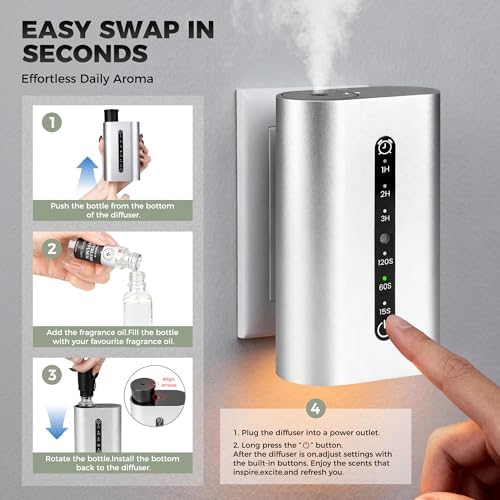 - Smart plug-in Scent diffuser: This waterless Scent diffuser uses the latest cold diffusion technology, which diffuses essential oils without the need for water, allowing you to easily enjoy pure and fragrant Scent without worrying about residue.