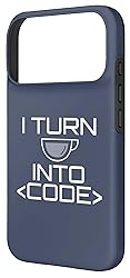 I TURN COFFEE INTO CODE. If you're a professional front-end, backend, full-stack, software, or UI/UX developer, you know how easy it is to obsess over codes and programming languages. Fun meme for your favorite developer who codes all day! Stay caffeinated! Great for a computer programmer, coder, anyone into web development. Click on the brand name for more funny coding memes. Two-part protective case made from a premium scratch-resistant polycarbonate shell and shock absorbent TPU liner protects against drops Printed in the USA Easy installation