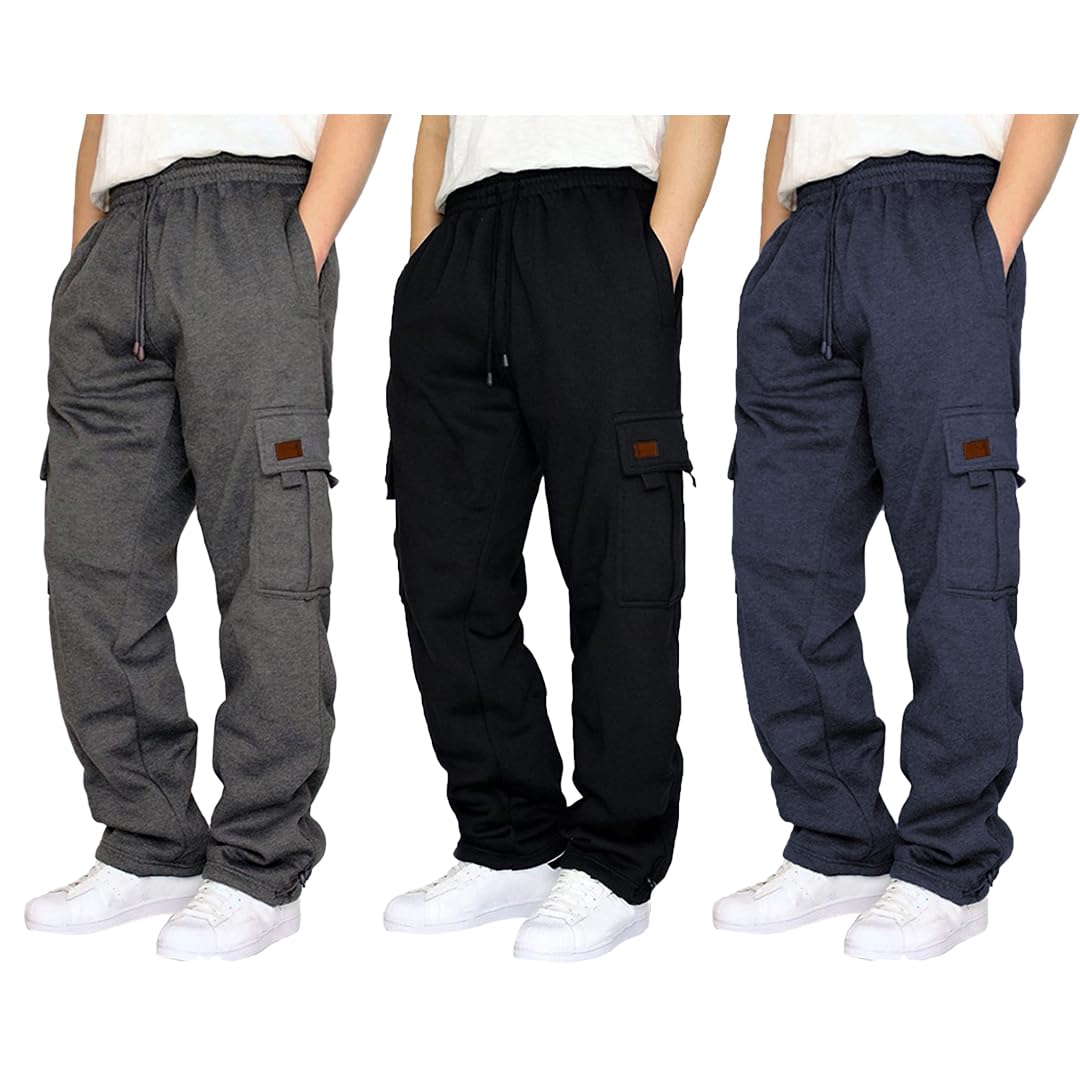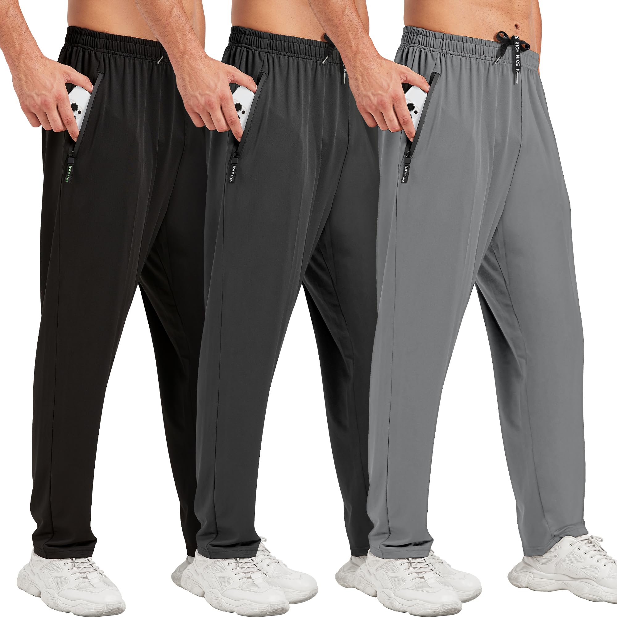 3 Pack Men's Active Jogger Pants, Lightweight Quick-Dry Workout Sweatpants with Zip Pockets(Black,Dark Gray,Light Gray,L)
