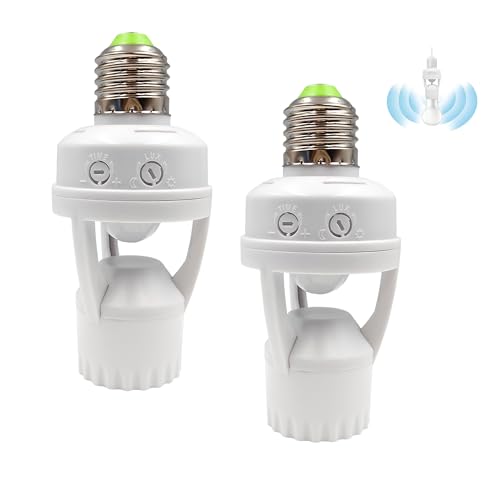 2pcs Motion Sensor Light Socket – E26 Edison Screw in Adapter for Automatic Light Control, Easy Install and Adjustable Duration – Ideal for Outdoor Indoor Garage Light, for Basement (2PCS)