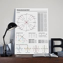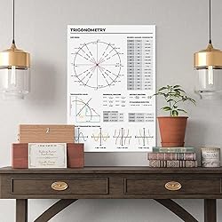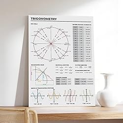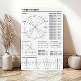 YFET Trigonometry Rules Trigonometric Functions Graphs And Cheat Sheet Unit Circle Study Notes for High Back to School Artwork Canvas Wall Art Print Posters For Home School Offices Decor Frame 12x18