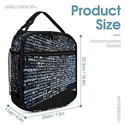 YHNNH Programmer Programming Code Lunch Bag Portable Insulated Lunch Box Reusable Large Capacity Picnic Box Water-Resistant Tote Bag for Work Travel Outdoor Camping