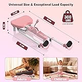 Achieve Perfect Splits Faster & Safer:The split machine is your ultimate partner for mastering front splits and middle splits. It provides controlled, assisted stretching for dancers, gymnasts, yogis, martial artists, and athletes of all levels, helping you safely increase flexibility and reach your goals without the risk of overstretching Precision Control from 0 to 180 Degrees:Features a secure anti-rebound gear system that allows you to have complete control over your stretch. Gently pull the lever back to gradually increase the angle and deepen your stretch, or push forward to release. Effortlessly progress from a gentle stretch to a full 180-degree split at your own pace Built to Last with Superior Comfort:Constructed with heavy-duty steel frame supporting up to 300 lbs. The plush seat cushion and unique U-shaped ankle guards provide exceptional comfort and protect your ankles during intense stretching sessions. Enjoy a stable and pain-free workout every time Customizable for Every Body:This stretcher grows with you. With 6 adjustable length settings (from 27 to 36.5 inches), it perfectly accommodates different heights for both men and women, from teens to adults. Whether you're a beginner or an advanced flexibility enthusiast, you can find your perfect fit Easy to Use & Store:Designed for convenience in any setting—home, gym, or studio. The compact design (27.2" x 12.4" x 6.1") and lightweight build (14.3 lbs) make it easy to move and store. Equipped with silent rollers and non-slip floor pads to protect your floors while you stretch in peace