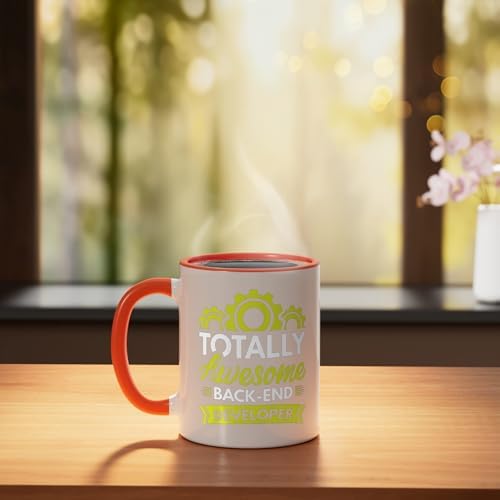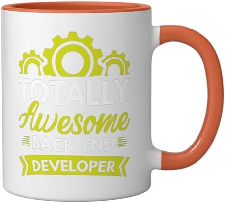 Funny Backend Developer Programmer Coder Shirt Ceramic Mug, Orange/White