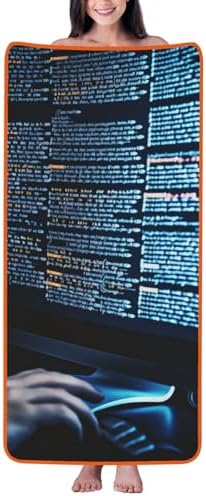 Programmer Programming Code Printed Bath Towel with Orange Edging - 27x55 in Soft Extra Absorbent Coral Velvet Shower Towels for Bathroom