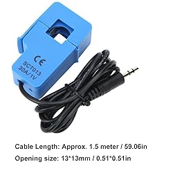 - SCT013030 30A AC split core current transformer sensor provides precise current measurement for energy monitoring systems. This clamp meter accessory enables non-invasive installation without interrupting circuits, ideal for load analysis and equipment protectionSimply open the spring-loaded clamp around a conductor to measure AC current flow. The split core design no need for disconnecting wires, making it suitable for permanent installation or temporary diagnostics. Built-in sampling resistor allows both current and voltage output options for flexible connectivityPackage includes one split core current sensor with standard 3.5mm output connector. Compatible with most energy meters and monitoring systems that accept current transformer inputsSpecifications:Item Type: Spit Core SensorModel: SCT013-030Current: 30AWorking Temperature: -25℃- 70℃Mechanical Strength: The time of opening and closing is not less than 1000 timesSafety Index: Dielectric strength (between shell and output) 6000V AC/1minCable Length: Approx. 1.5 meter / 59.06inOpening size: 13*13mm(0.51*0.51in)Color: BlueThree core: standard 3.5mm three corePlug output: two output forms: current and voltage (voltage output form with built-in sampling resistor)Fire retardant properties: UL94-V0Core Material: FerritePackage List:1 x Spit Core SensorNote:1. Due to the difference between different monitors, the picture may not reflect the actual color of the item2. Please allow slight dimension difference due to different manual measurements. Thank you for your understanding
