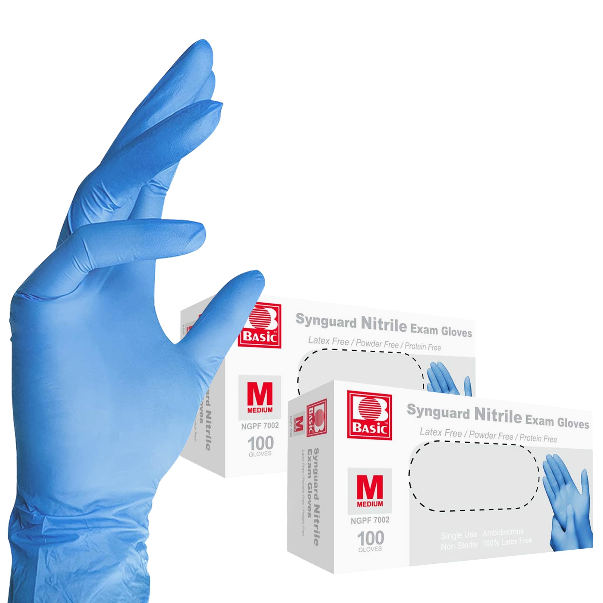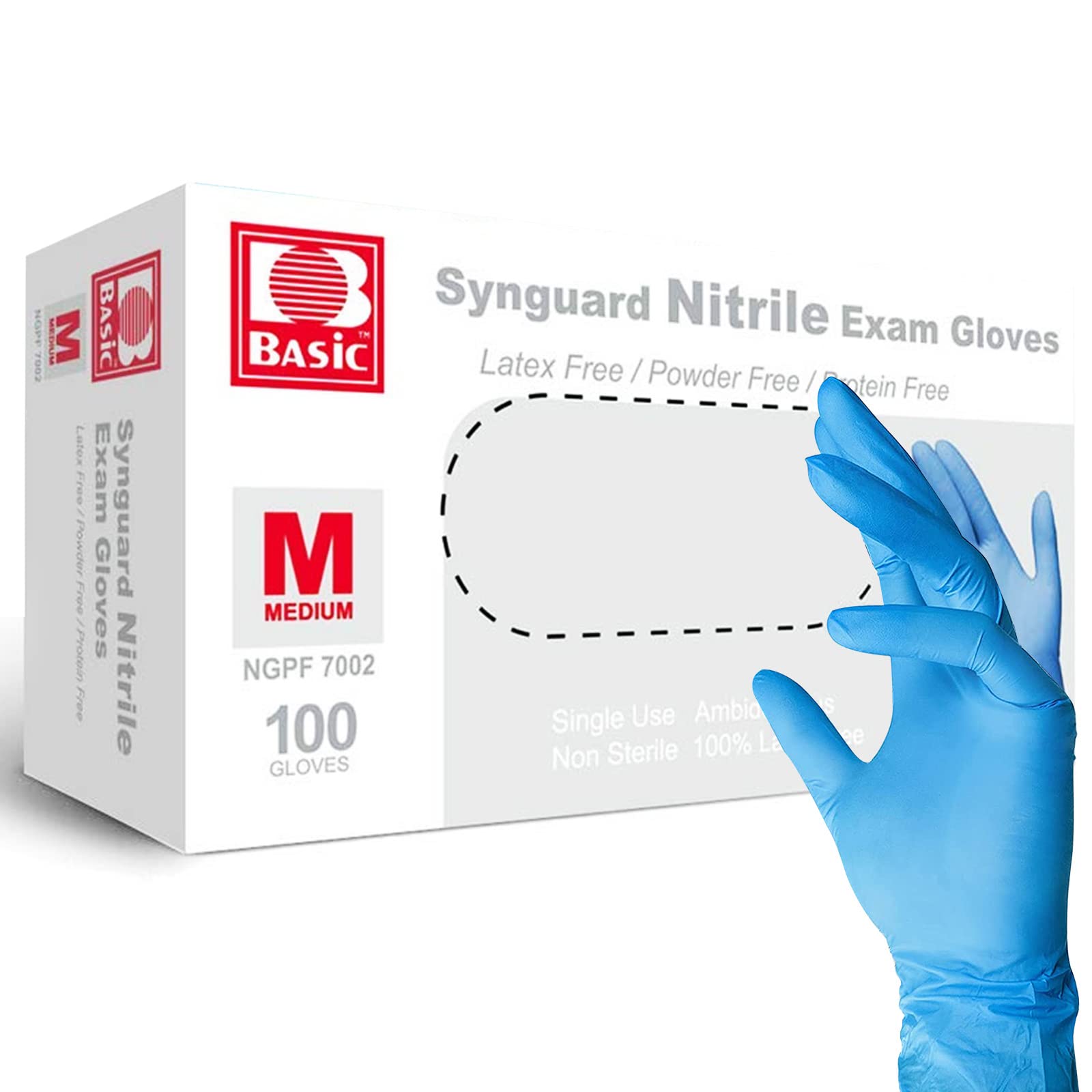 Basic Medical Synmax Vinyl Exam Gloves - Disposable Blue Surgical Gloves, Latex-Free & Powder-Free -Large, Box of 100