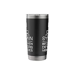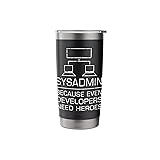 Sysadmin because even Developersneed heroes is a funny idea for every developer, hacker, coder and programmer that do programming, coding, debugging table. If you study information technology or science, tell them about the bits and bytes. Funny System Admin Even Developers Need Heroes Nerd PC is a perfect for everyone who loves coding and developing new computer langues. Perfect as a birthday or christmas for an engineer, programmer or someone who loves technology. Dual wall insulated: keeps beverages hot or cold Stainless Steel, BPA Free Leak proof lid with clear slider