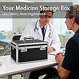 Dual Combination Lock Security: Features two independent 3-digit combination locks providing maximum security for medications and valuables. Initial code: 000 for both locks. Set personalized codes for enhanced protection, perfect for households with children or shared spaces requiring extra security measures. Premium Construction Materials: Built with high-quality aluminum alloy frame and durable MDF material, ensuring superior durability compared to plastic alternatives. The reinforced structure provides impact resistance and long-lasting reliability for everyday use in home, office, or medical settings. Spacious Storage Capacity: Large 14.76 x 7.6 x 9.1 inch interior accommodates various medication bottles, first aid supplies, and personal items. Includes removable plastic tray for organized storage and easy access to essential medications when needed. Portable Design with Shoulder Strap: Equipped with adjustable shoulder strap and comfortable carrying handle for easy transportation. Lightweight yet sturdy construction makes it ideal for travel, medical appointments, or emergency situations where secure medication access is crucial. Versatile Multi-Purpose Application: Perfect for home medicine storage, office medical supplies, school health rooms, and travel use. Provides secure storage for medications, documents, jewelry, and other valuables, ensuring peace of mind whether at home or on the go.