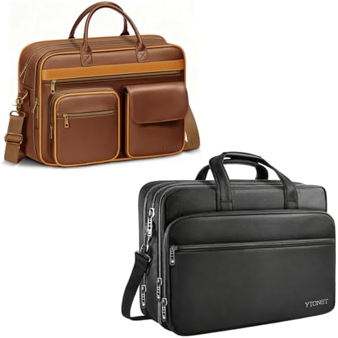 Ytonet Leather Messenger Bag for Men, 15.6 In Vintage Briefcase with Padded Laptop Compartment, Large Satchel Bags Laptop Bag for Mens, Waterproof Computer Bags for Work Office Business Travel, Brown & Ytonet Gaming Laptop Briefcase 18 Inch, Expandable Extra Large Case for Computer, Water Resistant Bag for Men With Luggage Strap, Work Travel Carrying Case, Black