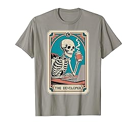 The Developer Tarot Card Programmer Software Engineer Coding design for web developer, software engineer and programmmers who loves writing code and have tech humor. For programmer, sys admin and any computer science student geek. Funny software engineer design for developer and computer experts. For long coding nights, at software development job during computer engineering for coding nerds and coder. Lightweight, Classic fit, Double-needle sleeve and bottom hem