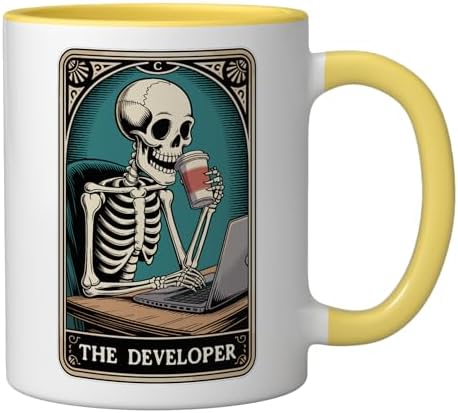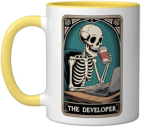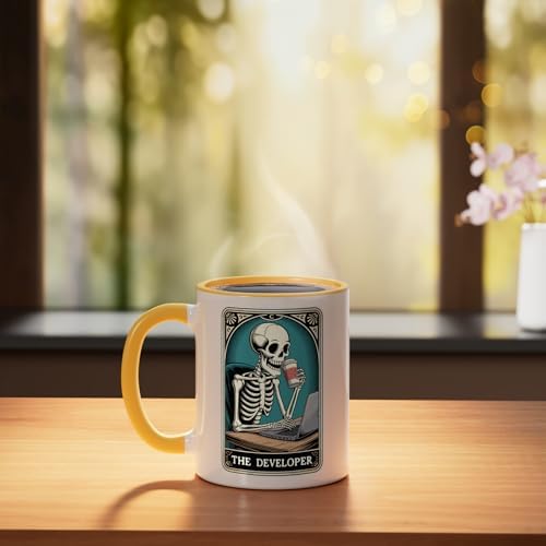 The Developer Tarot Card Programmer Tech Software Engineer Ceramic Mug, Yellow/White