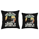 Black Cat Tech Support for Retro IT Nerds and Programmers Throw Pillow