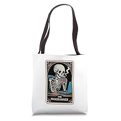 The Programmer Tarot Card Developer IT Software Engineer design for web developer, software engineer and programmmers who loves writing code and have tech humor. For programmer, sys admin and any computer science student geek. Funny software engineer design for developer and computer experts. For long coding nights, at software development job during computer engineering for coding nerds and coder. 16” x 16” bag with two 14” long and 1” wide black cotton webbing strap handles. Made of a lightweight, spun polyester canvas-like fabric. All seams and stress points are double-stitched for durability, and the reinforced bottom flattens to fit more items and hold larger objects. Spot clean/dry clean only.