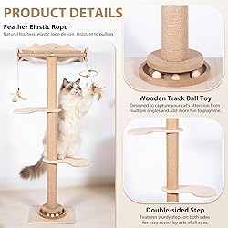 - Heavy-Duty Scratching Post : Built with a sturdy solid wood base and durable natural sisal-wrapped posts, this window-mounted cat tree is perfect for large cats or multi-cat homes, offering secure climbing, lounging, and active play. 360° Window View for Mental Stimulation: At 48" tall with adjustable post sections, this perch hammock gives your cat a panoramic view for sunbathing and bird watching. The elevated vantage point keeps curious cats mentally engaged and satisfies their instinct to observe from above. Multi-Zone Fun: Scratching, Climbing & Feather Toys: Features natural sisal scratching posts, a cozy hammock, and two feather teaser bungee cords on both sides to attract your cat’s attention. The bottom base includes a track ball toy for extra entertainment. DIY Adjustable Height with Two Step Platforms: Customize the height by adding or removing post sections, and use the two included wooden step platforms to create your ideal climbing route. This makes it easy for kittens, adults, and senior cats to reach the top hammock comfortably. Easy Installation: Mounts securely with strong suction cups for a drilling-free setup (the hammock part requires screws). The Fantasreen team will always provide you with professional customer service before and after your purchase.