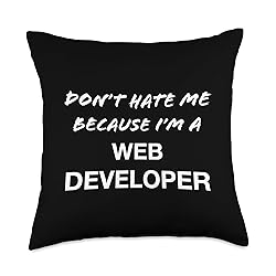 This design proudly declares, “Don’t Hate Me Because I’m a Web Developer” Perfect for the Web Developer who just wants to be appreciated 100% spun-polyester fabric Double-sided print Filled with 100% polyester and sewn closed Individually cut and sewn by hand Spot clean/dry clean only