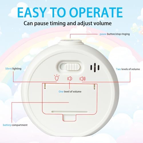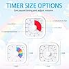 - Silent Operation: The timer operates without any ticking sound, ensuring safe and worry-free use. Three volume options: mute, low frequency, and high frequency. All alarm modes (light/sound) automatically stop after 100 seconds.
