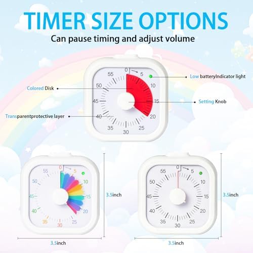 - Simple and Beautiful Design: This visual timer features a rainbow pattern. The vibrant rainbow disc will spark children's interest and help them complete tasks more easily. Suitable for classrooms, kitchens, bedrooms, libraries, gyms, and more.