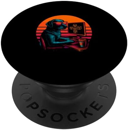 Retro Dog with Code Developing Blockchain Developer PopSockets Adhesive PopGrip
