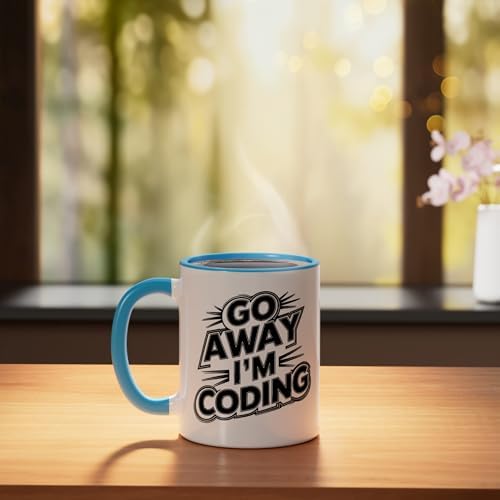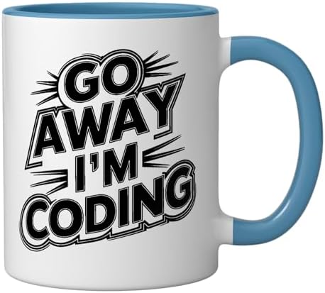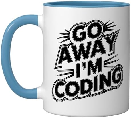 Go Away I'm Coding Funny Software Developer Programmer Ceramic Mug, Blue/White