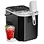- CONVENIENT PORTABLE ICE MAKER: Features a sturdy handle for easy carrying and a scoop that attaches to the basket for compact storage. Weighing only 13.7 lbs, this portable ice machine moves effortlessly between rooms or events.