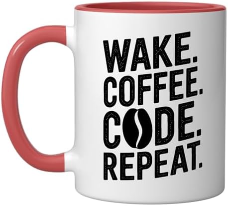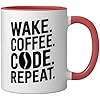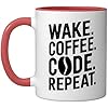 Wake Coffee Code Repeat Funny Programmer Coffee Ceramic Mug, Red/White