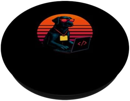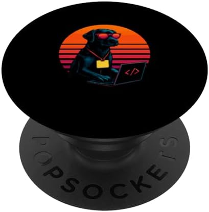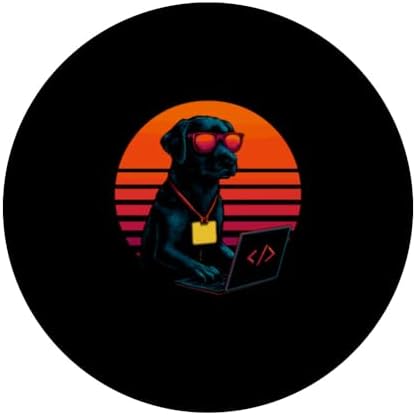 Retro Dog with Code Screen Building Web Developer PopSockets Adhesive PopGrip