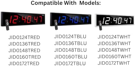 Ivation Remote Control for Large Digital LED Timer Clock. Compatible with the following models: JID0124TBLU JID0124TRED JID0124TWHT JID0136TBLU JID0136TRED JID0136TWHT JID0148TRED JID0148TBLU JID0148TWHT JID0160TRED JID0160TBLU JID0160TWHT JID0172TBLU JID0172TRED JID0172TWHT