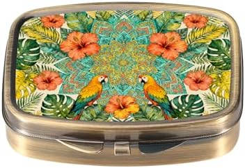Dynippy Pill Case Pill Box with Mirror Retro Pocket 2 Compartment Medicine Case Vitamin Pill Organizer for Pocket Purse and Travel (A-Vibrant Tropical Florals)