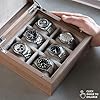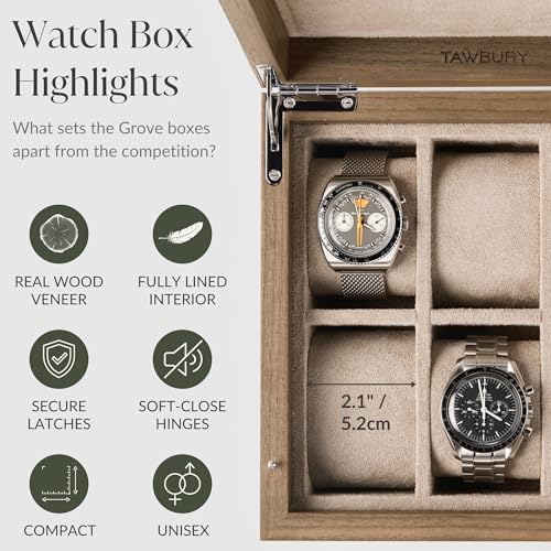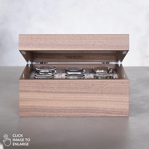 TAWBURY Grove 6 Slot Wooden Watch Box with Solid Lid in Light Walnut with a Set of X-Small Pillows for Smaller Wrists