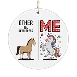 - OTHER SQL DEVELOPERS vs ME Round Ceramic Ornament: Celebrate special moments with this 3-inch round ceramic ornament featuring the quote OTHER SQL DEVELOPERS vs ME, a perfect keepsake designed for SQL Developer. Crafted from high-quality ceramic with a glossy finish, this ornament showcases a UV-printed design for vibrant, long-lasting colors that won't fade. Its solid one-piece construction ensures durability, with no glued or sandwiched materials to wear out over time. The one-sided print adds a beautiful decorative touch, while the included gold-toned hanging string makes it easy to display on a Christmas tree, wall, or gift wrapping. Measuring 0.125 inches (3mm) thick, it is lightweight yet sturdy, making it a thoughtful gift for men, women, adults, and kids on special occasions such as birthdays, Valentine's Day, and Christmas. Whether used as a holiday decoration or a sentimental keepsake, this ornament is a meaningful way to surprise SQL Developer and add charm to any space. Care Instructions: Gently wipe clean with a dry microfiber cloth to maintain its glossy finish.