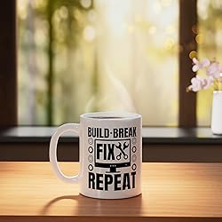 Are you a pc builder who enjoy building gaming computer rigs? Do you put lights with your computer setup? If yes, then this Build Break Fix Repeat is for you. A pc building clothes for men and women who is a proud pc builder. This is for computer engineers and information technology graduates who know computer configurations and setups. Ideal for a computer expert who enjoy customizing computers parts. Perfect pc builder outfit while working with your computers. 11-ounce ceramic mug is dishwasher and microwave-safe, lead and BPA free Features glossy finish with accent colors on interior, handle, and rim of two-tone designs