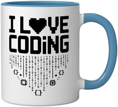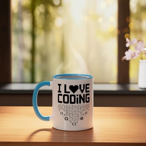 I Love Coding Heart Binary Code Design Ceramic Mug, Blue/White