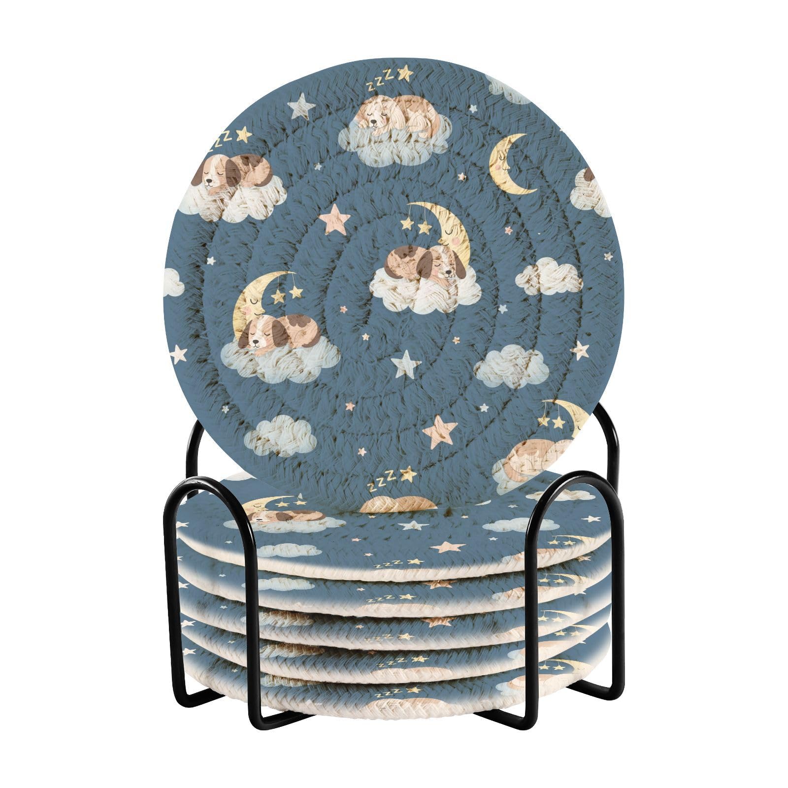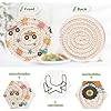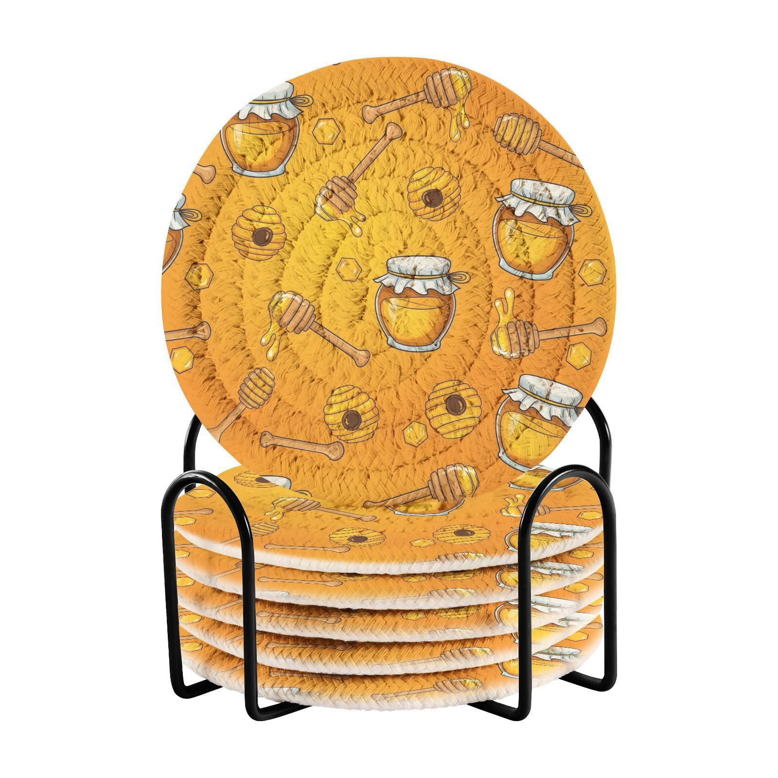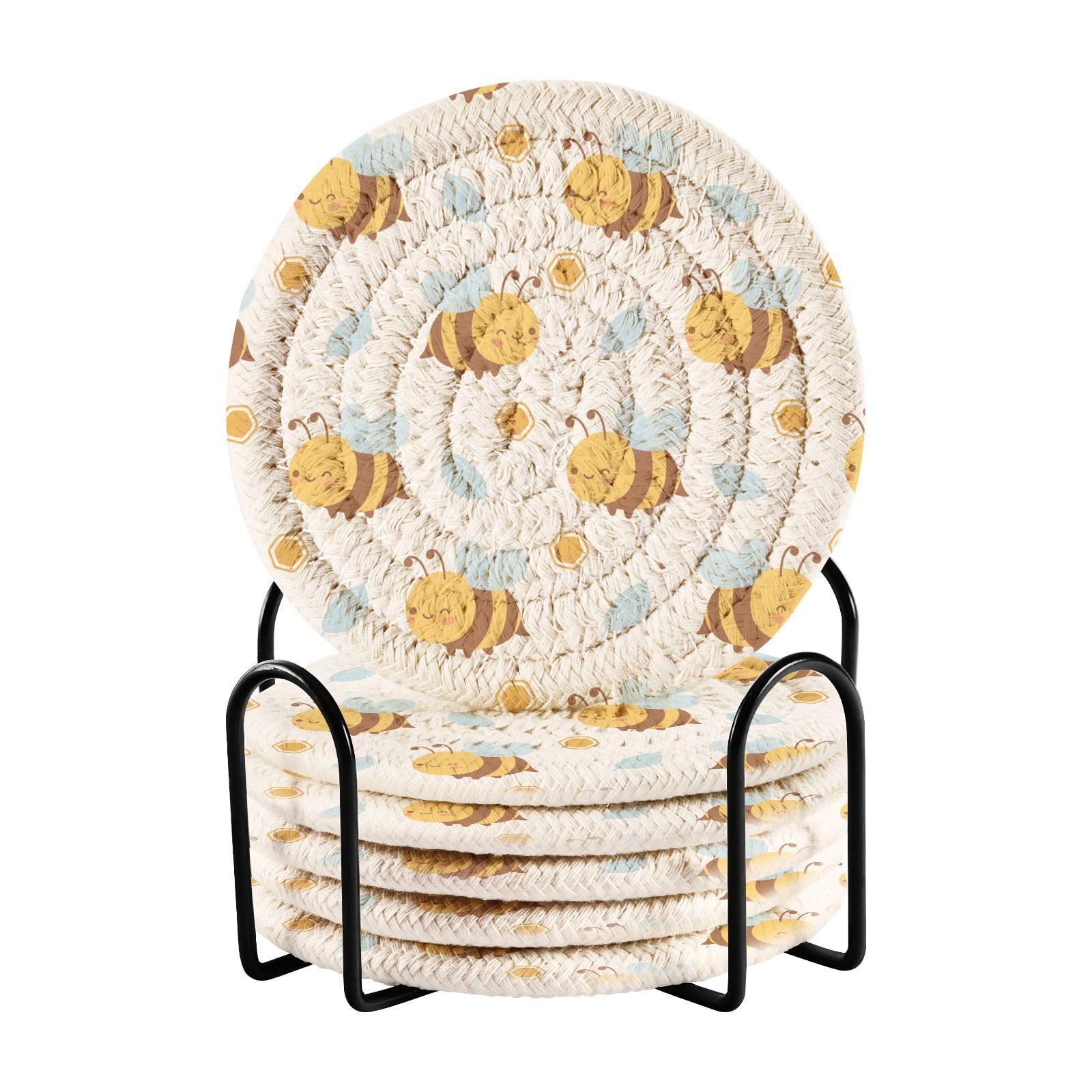 Product Size Pack of 6, round 3.94in (10cm) in diameter. Thickness:0.24in (0.6cm) . Includes storage iron shelf (Black) Applicable Scene Family kitchen, Dining table, Office, Study, Cafe, Restaurant, Hotel or Business office, etc.; Can be used as coasters, heat insulating mats, small bowl mats, vase mats, etc. Features for innewgogo Absorbent Drink Coasters Our drink coasters are engineered to shield your tabletops, furniture, and kitchen counters from unsightly stains, heat marks, and water rings. Don't let accidental spills ruin the ambiance; These drink coasters have got you covered! Crafted from a high-quality blend of materials, these bar coasters have superior absorbency, ensuring no more pesky drips on your surfaces. Feel confident hosting gatherings and impress your guests with these absorbent wonders. Partnering functionality with durability, our woven coasters feature a heat and water-resistant design, making them ideal for both hot and cold beverages. Sip your morning coffee or enjoy a refreshing drink without worrying about unsightly damage. Searching for the perfect gift? Look no further! These drink coasters are ideal for housewarmings, birthdays, or any occasion that calls for a touch of elegance. Impress your loved ones with a gift that complements any decor style.XP005