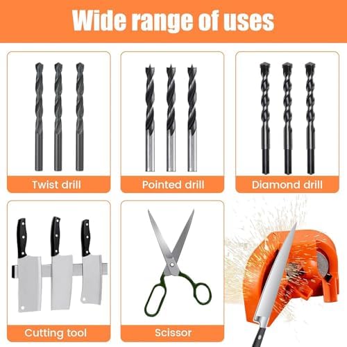 - Multi-Purpose Wheel Design: Equipped with four industrial-grade grinding wheels, this Drill Bit Sharpener Tool provides efficient sharpening not just for drill bits but also adapts to handle various cutting tools including kitchen knives. This versatile design makes it an all-in-one sharpening solution that adds value to any workshop or household tool kit.