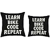 Coding and Biking Funny Learn Code Repeat Throw Pillow
