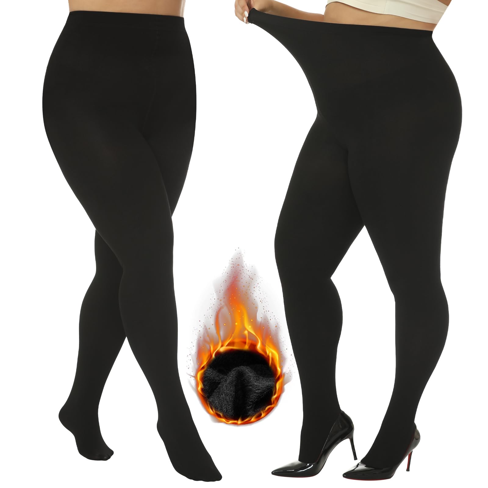 Plus Size Fleece Lined Tights &20-30mmHg Compression Socks for Circulation Support,Warmth and Health Combo(Black-XXL-M Tights+patchwork-XL socks)
