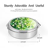 Dynippy Pill Case Pill Box with Mirror Pocket 3 Compartment Medicine Case Vitamin Pill Organizer for Pocket Purse and Travel (Round, Silver-Lucky Shamrocks)