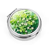 - Dynippy Pill Case Pill Box with Mirror Pocket 3 Compartment Medicine Case Vitamin Pill Organizer for Pocket Purse and Travel (Round, Silver-Lucky Shamrocks)