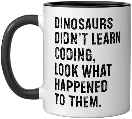 Dinosaurs Didn't Learn Coding Funny Programming Programmer Ceramic Mug, Black/White