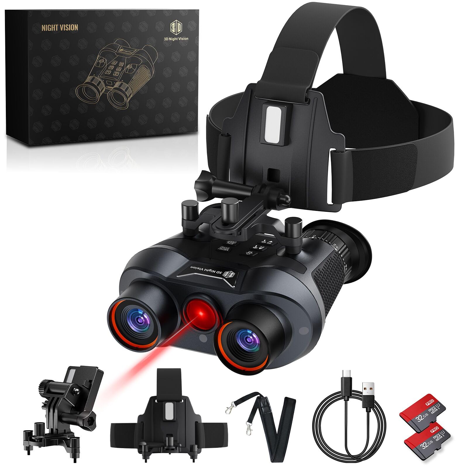 Dsoon Night Vision Goggles, Upgraded Head-Mounted Night Vision Binoculars with Infrared, Tactical Flashlight, Built-in Compass, Key Backlight, 32GB Card, 8X Digital Zoom