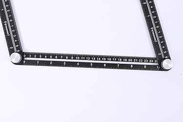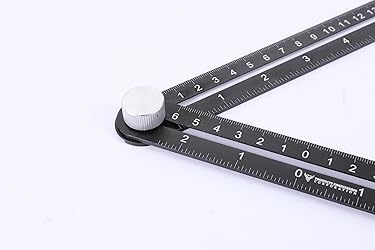 📐Built for Precision – Laser-etched measurements in both inches and centimeters provide clear, easy-to-read guidance. Ideal for both metric and imperial users. 🔄 Adjustable 4-Arm Design – Features four pivoting rulers with knurled aluminum knobs that lock securely into place, allowing you to trace or mark exact patterns without slipping. 🧰 Durable Metal Construction – Constructed with high-quality metal and finished in matte black with high-contrast white markings for maximum visibility and rugged performance. ✅Essential Tool for Pros & DIYers – Whether you're a contractor, woodworker, tiler, or hobbyist, this multi-angle ruler speeds up layout work and improves repeatability, especially for angled or repetitive cuts.