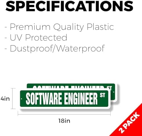 SOFTWARE ENGINEER Classic Street Sign (2 Pack) computer code writer IT programmer Road Sign | 4" X 18" Plastic Address Sign