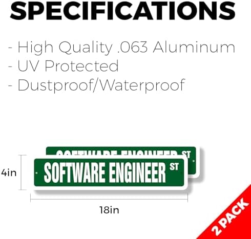 SOFTWARE ENGINEER Classic Street Sign (2 Pack) computer code writer IT programmer Road Sign | 4" X 18" Aluminum Metal Address Sign