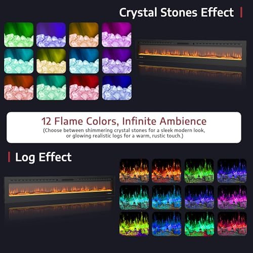 - 【14 Flame Colors + Crystal Sets Included】Create your preferred ambiance with 14 flame color options and multiple brightness levels. Comes with a crystal ember set so you can freely choose a classic or modern appearance