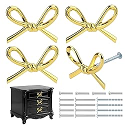 Foyofly 4 Set Gold Bow Dresser Knobs Cute Drawer Knobs Gold Decor Drawer Zinc Alloy Brushed Brass Hardware Handles Pulls Vintage Cupboard Drawer Knob for Kitchen Cabinets Home Bedroom (4, Gold)